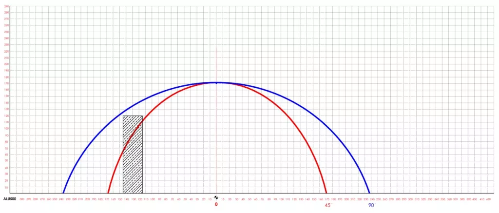Zakres cięcia piły tarczowej o średnicy 500mm