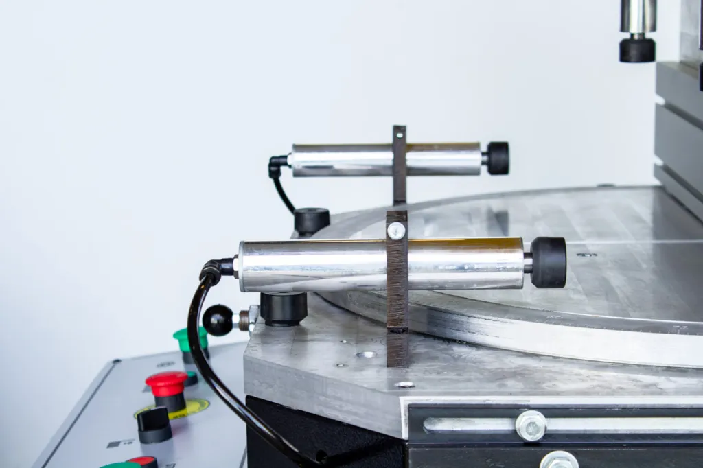 Pneumatyczne dociski pionowe i poziome zapewniające stabilność obrabianego materiału.
