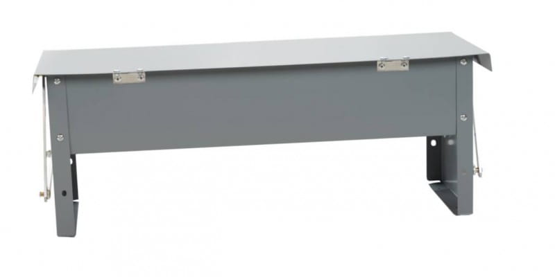 Karmnik wykonany z blachy ocynkowanej chroni paszę dla kurczaków/drobiu przed wiatrem i warunkami atmosferycznymi oraz przed niepożądanymi gryzoniami.