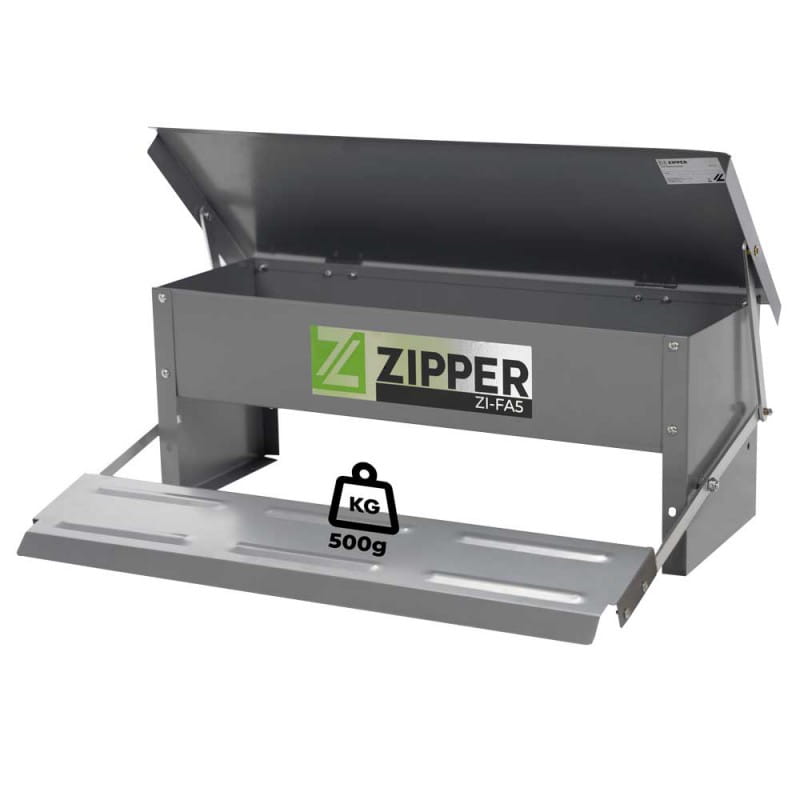 Funkcjonalny karmnik dla kur i innego drobiu marki Zipper doskonale sprawdzi się we wszelkiego rodzaju gospodarstwach rolnych i amatorskich hodowlach ptaków. Model ZI-FA5 nadaje się do pasz sypkich (ziarna, granulat, śruta).