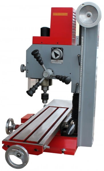 Posuw osi X w wyposażeniu standardowym, stół krzyżowy w rozmiarze XL (700x180mm), zmienna regulacja prędkości obrotowej z cyfrowym wyświetlaczem, cyfrowa informacja o głębokości wiercenia z funkcją bazowania, obroty w lewą stronę i w prawą stronę w wyposażeniu standardowym, prowadnice stołu krzyżowego i głowicy wiertarskiej o przekroju w kształcie jaskółczego ogona, głowica frezowa przekładni obracana bezstopniowo, co rozszerza możliwości zastosowań, dodatkowe koło ręczne umożliwiające dosuw przy frezowaniu, dźwignia trójramienna umożliwiająca dosuw przy wierceniu, stół krzyżowy wysokiej jakości z podziałką i ogranicznikami, cokół z odlewu zwiększający stabilność, idealna maszyna dla warsztatów szkolnych, mechaników precyzyjnych i majsterkowiczów.