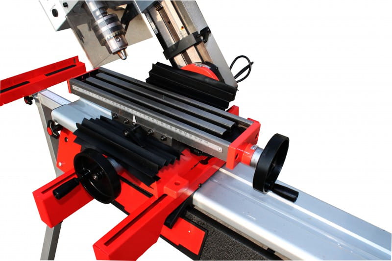 - Prowadzenie stołu krzyżowego i przekładni na jaskółczy ogon, regulowane poprzez listwy prowadzące