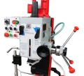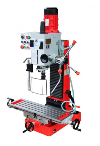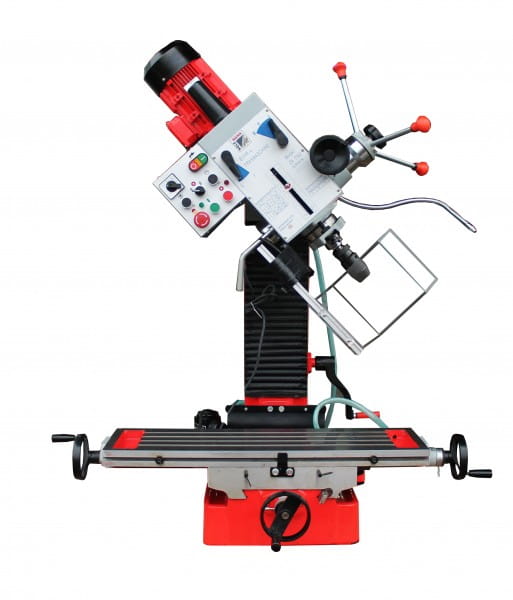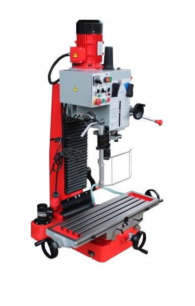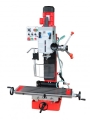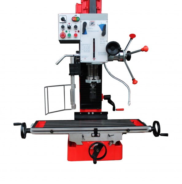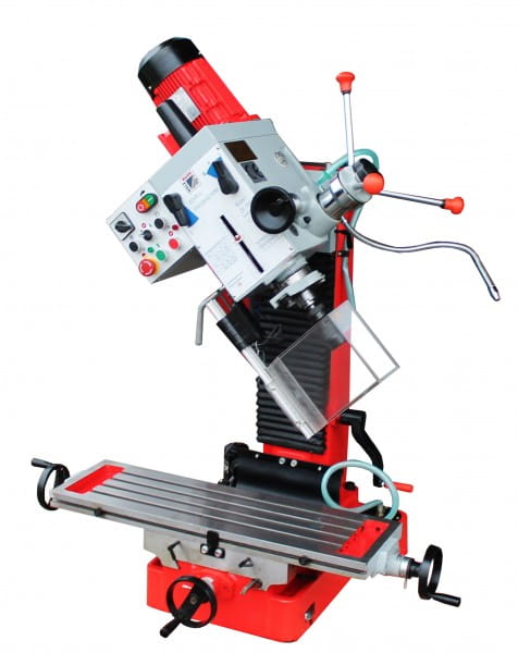 2-stopniowy silnik umożliwiający zwiększenie prędkości obrotowej, stół krzyżowy w rozmiarze XL (820x240mm), głowica przekładni odchylana, z precyzyjną regulacją wysokości dzięki prowadnicy o przekroju w kształcie jaskółczego ogona (360°), prowadnice o przekroju w kształcie jaskółczego ogona gwarantujące największą dokładność, stół krzyżowy z rowkami teowymi 14 mm zapewniającymi szybkie i proste ustawienie imadła, dosuw tulei wrzecionowej poprzez trójramienną dźwignię i precyzyjne koło ręczne z podziałką głębokości, odchylana osłona uchwytu zaciskowego z pleksiglas, opcjonalna podstawa maszyny z praktyczną półką na narzędzia