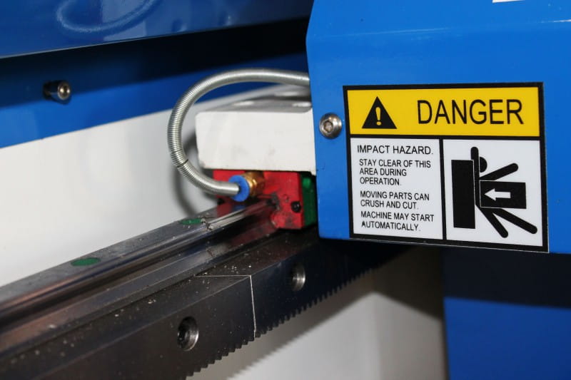 - Na osi Y zamontowano 2 wyłączniki bezpieczeństwa tzw. grzybki pozwalające na awaryjne wyłączenie maszyny w dowolnym momencie