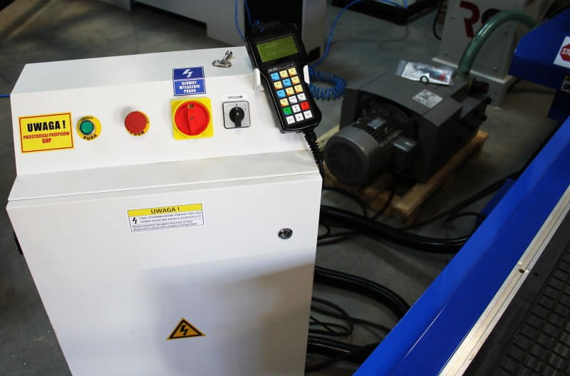 - Na osi Y zamontowano 2 wyłączniki bezpieczeństwa tzw. grzybki pozwalające na awaryjne wyłączenie maszyny w dowolnym momencie