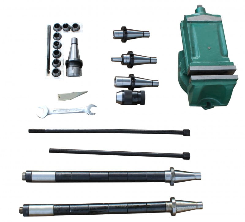 3-osiowy wyświetlacz w wyposażeniu standardowym, automatyczny posuw stołu na osi X w wyposażeniu standardowym, wykonanie w odlewie, ciężkie i absorbujące wibracje, wrzeciono poziome i pionowe z napędem przekładniowym, możliwość szybkiego i prostego przekształcenia z frezarki pionowej na poziomą, przekładnia olejowa ze szlifowanymi i hartowanymi kołami przekładni, wrzeciono pionowe z mocnym 2-stopniowym silnikiem, system chłodzenia i lampa halogenowa w wyposażeniu standardowym, obroty w lewą stronę i w prawą stronę oraz element oporowy ISO40, prowadnice o przekroju w kształcie jaskółczego ogona precyzyjnie regulowane poprzez listwy klinowe, przestawne ograniczniki osi, masywny i duży stół krzyżowy z rowkami teowymi 14mm.