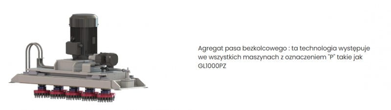 Doskonałe rozwiązanie w przypadku występowania tzw. „wypływki” i przepału materiału np. po cięciu laserem. W agregacie pasa bezkońcowego można stosować różne papiery ścierne, a rodzaj papieru ściernego będzie miał inne zastosowanie, przeznaczenie i będzie dawał inne efekty. Zastosowany również w maszynie GL1000 PZ agregat typu „Z” pozwala w etapie końcowym obróbki na wykończenie detalu pod wymogi klienta takie jak: usunięcie gratu lub silne zaokrąglenie krawędzi w zależności od zastosowanych narzędzi.