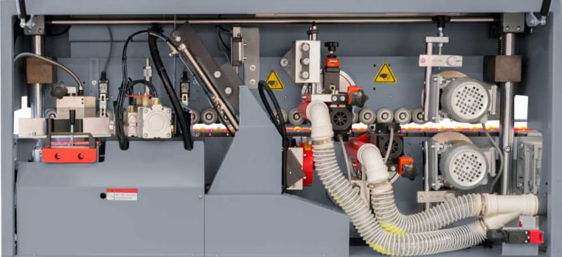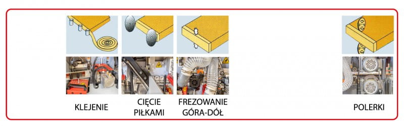 - agregat piły do docinania obrzeży (jeden agregat na stronę przednią i tylną) - silnik 0,37 kW i 1380 obr/min