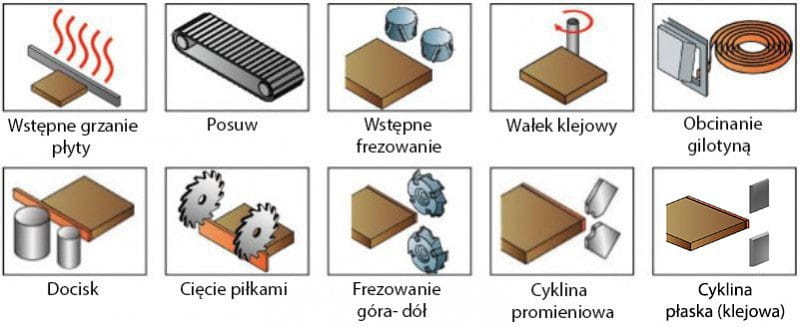 - Cyklina promieniowa: precyzyjnie dostraja promień krawędzi i usuwa nadmiar kleju.