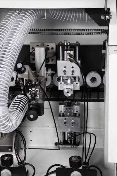 - Jednostka polerująca: jednostka ta pozostawia doskonałe wykończenie na obrzeżach ABS i PCV i usuwa wszelkie odbarwienia na krawędziach, co jest szczególnie widoczne podczas pracy z ciemnym materiałem na krawędziach.