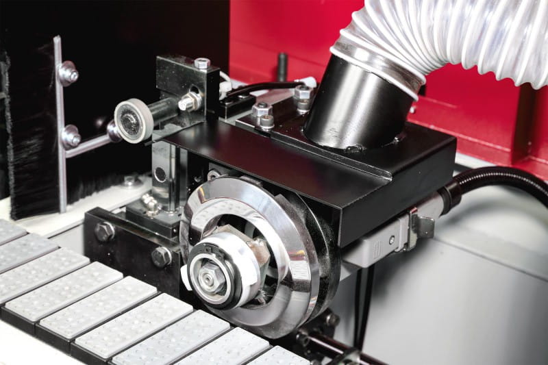- Jednostka wstępnego frezowania: Dwie diamentowe głowice frezujące pozwalają na osiągnięcie idealnie prostej krawędzi obrabianego elementu.
