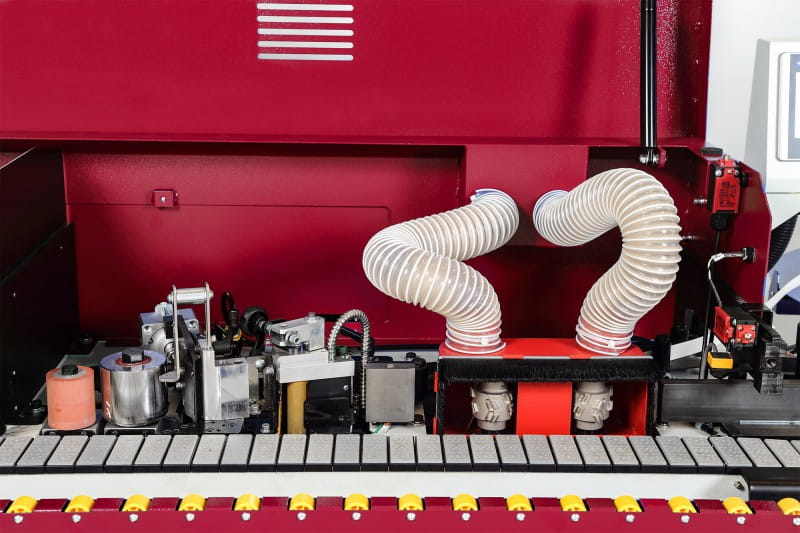 - Jednostka frezowania góra-dół: Możliwość dostosowywania ustawień od frezowania aż do dokładnego wygładzania cienkich krawędzi, a także szybkie i łatwe przycinanie wąskich krawędzi. Z promieniem 2 mm dostępnym w standardzie z odpylaniem.