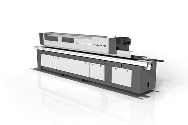 Okleiniarka K36 niemieckiej firmy Hebrock oferuje niespotykane opcje. Opracowana dla najwyższych wymagań reprezentuje absolutną niezawodność i wydajność w codziennym użytkowaniu. Okleiniarka z systemem nakładania kleju na krawędź elementu i okleinowania obrzeżem o grubości od 0,4 do 3 mm w elementach o grubości od 8 do 60 mm oraz z wstępnym frezowaniem płyty frezami diamentowymi i zarabianiem naroży. Maszyna wyposażona optymalnie do każdego rodzaju obrzeża umożliwia perfekcyjne wykończenie przy najróżniejszych grubościach krawędzi.