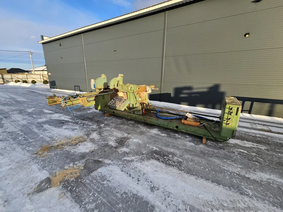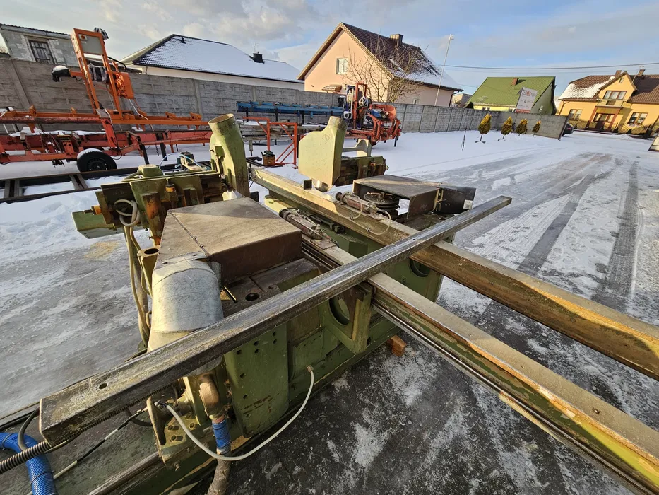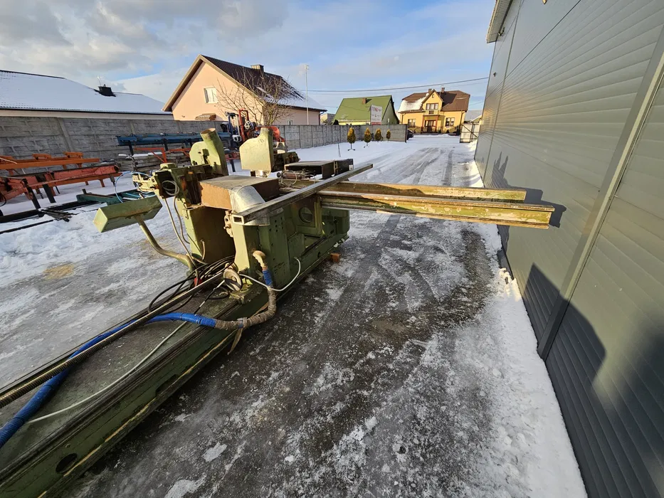 Pila formatowa Torwege do deski paletowej z czopiarką elektrycznie rozsuwane głowice szerokość cięcia 260 cm.