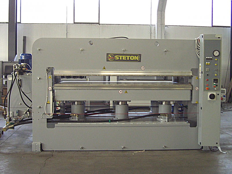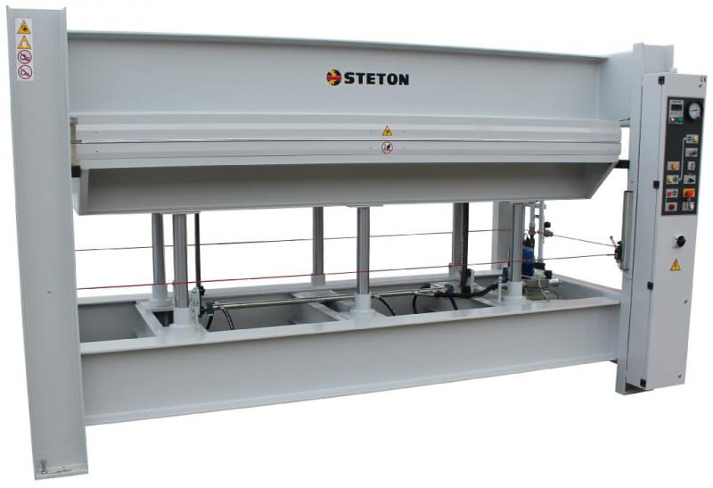 Cechy - Prasa hydrauliczna półkowa na gorąco z bojlerem elektrycznym do klejenia forniru STETON 2500X1300