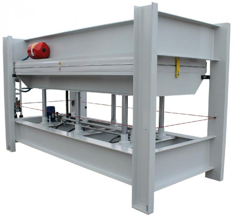 Cechy - Prasa hydrauliczna półkowa na gorąco z płytą grzaną elektrycznie do klejenia forniru STETON 3500X1300