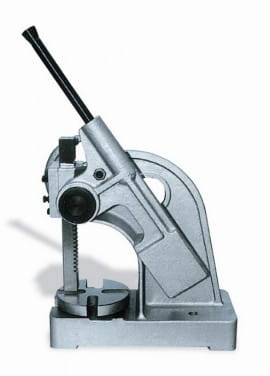 Nacisk 3 t Maks. wysokość prześwitu materiału 320 mm Wymiar tłoku prasy 38 x 38 mm Długość tłoka 460 mm Długość rączki 570 mm Całkowita wysokość prasy 550 mm Szerokość rowka w podstawie 60 mm Wysięg prasy 148 mm Rozmiar podstawy 455 x 200 mm Masa 58 kg