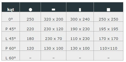 - Cięcie pod kątem Lewo / Prawo 45°- 0° – 45° – 60°