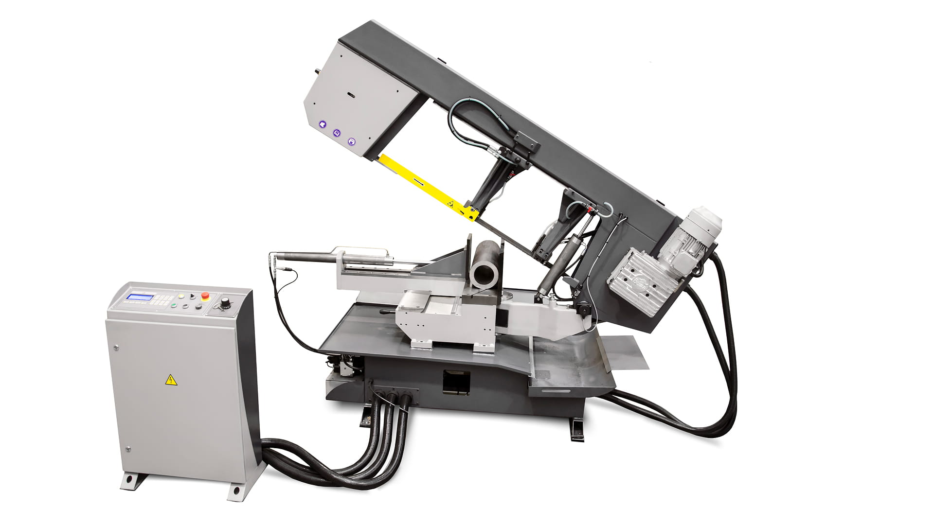 Transverse 510.330 DGH to przecinarka taśmowa o charakterze półautomatycznym z możliwością cięcia pod kątem pod kątem 45° oraz 60° zarówno w prawo, jak i w lewo.