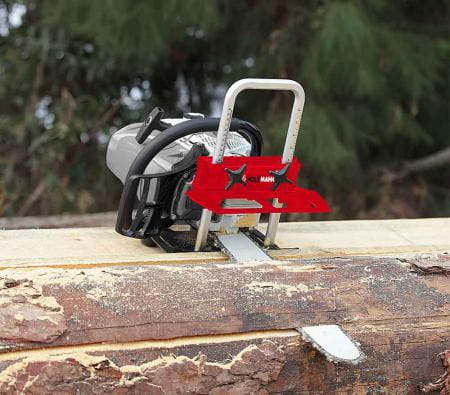 MOBAS1 Holzmann jest to urządzenie, które pozwala używać piły łańcuchowej jako małego traka zwiększając precyzję cięcia.