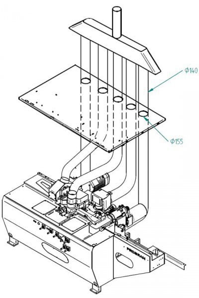 - Wały pionowe mają skok osiowy 90 mm pod stołem roboczym, z frezem o max. średnicy 160 mm