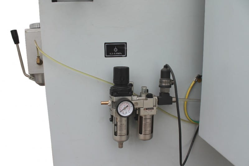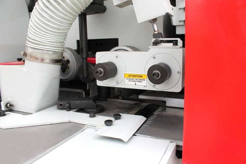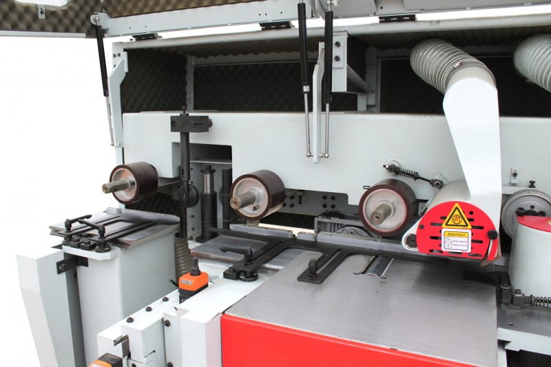 - przykryty kaptur maszyny umożliwia optymalne odsysanie wiórów, redukuje hałas oraz zwiększa bezpieczeństwo pracy
