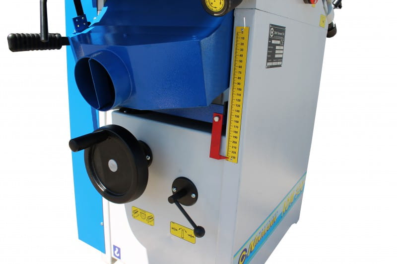 Blaty żeliwne z oszlifowaną powierzchnią. Stoły z precyzyjną regulacją do strugania wzdłużnego. Stabilne aluminiowa listwa (culaga) z możliwością pochylenia od 90° do 45°. Osłona głowicy frezowej. Stół roboczy strugarki grubościowej z centralną kolumną prowadzącą i suportem. Włączanie i wyłączanie zasilania bez zatrzymywania maszyny. Dłutarka z lewymi obrotami. Sinik 3,0 kW.