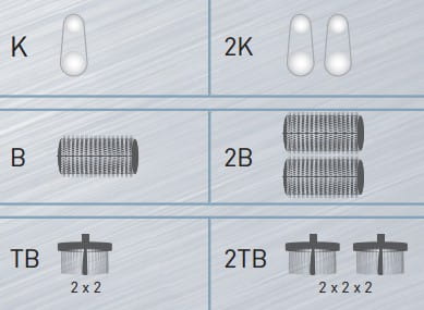 - Spiralne bębny stykowe 70°SH (v=20 m/sec) lub 40°SH (v= 10 m/sec) gwarantują lepsze chłodzenie i wydłużają żywotność taśmy szlifierskiej