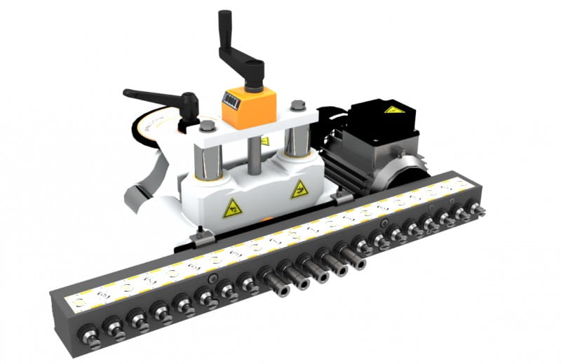 F 21 Wiertarka z 21 wrzecionami. Z pneumatycznym pochyłem głowicy