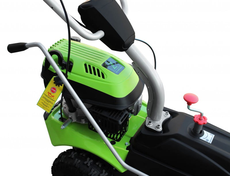 - Dzięki mocnemu silnikowi 5,75 KM i szczotkarce o szerokości 100 cm oszczędza czas pracy oraz doskonale sprawdza się przy dużych powierzchniach.